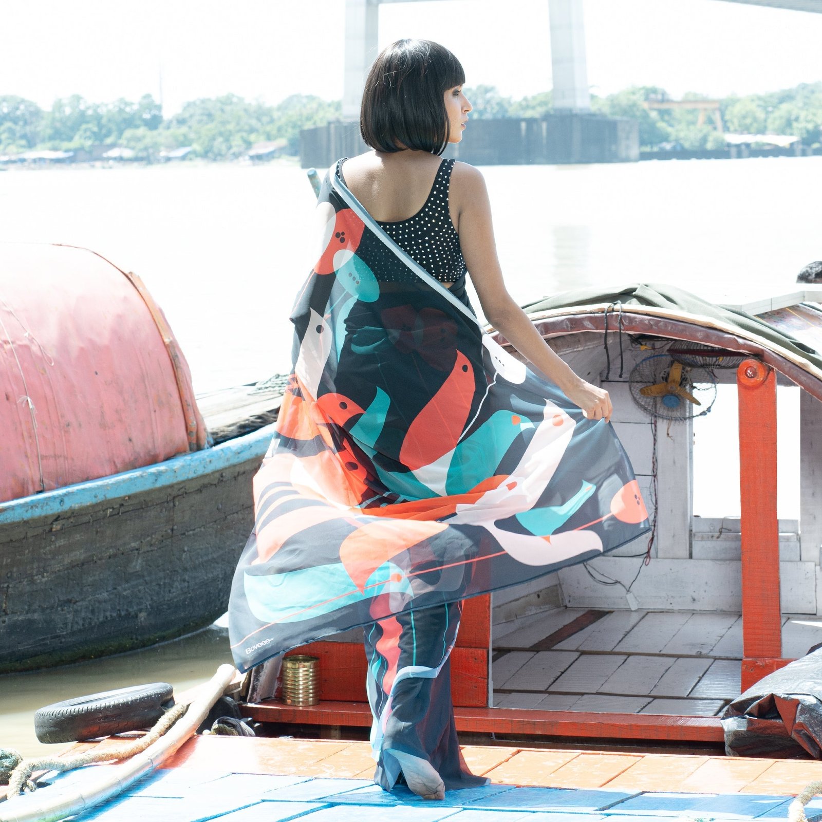 Don’t shy when you wear TIARA digital saree from Boveee like a Queen inside out